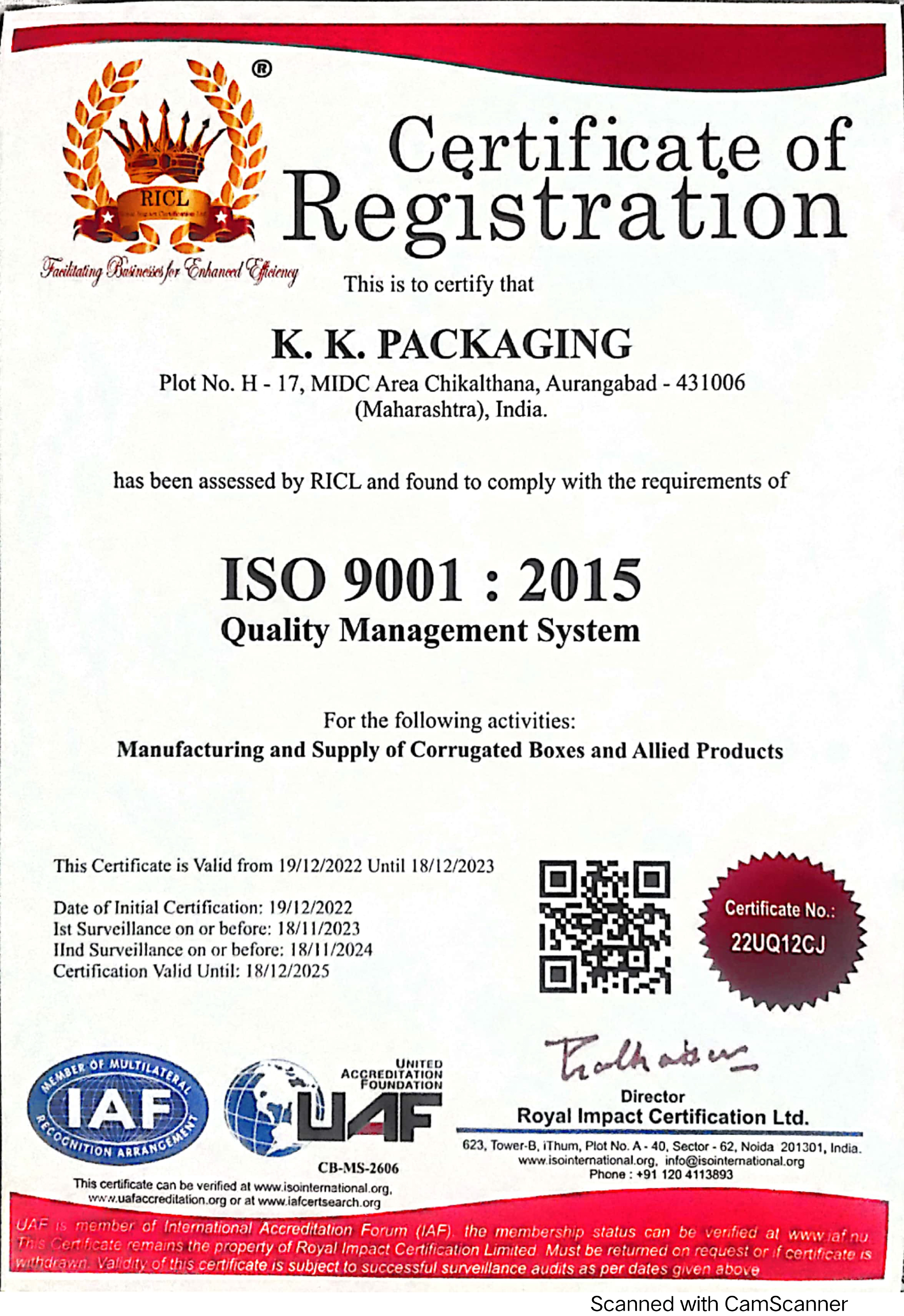 Established in the year 2006, K. K. PACKAGING has made its presence felt as a manufacturer and suppliers of a wide array of packaging boxes. Our Product includes Wooden Pallets and Wooden Boxes, Corrugated Boxes in 3 , 5 and 7 Ply, Printed and Plain Corrugated Boxes, Hessian cloth corrugated boxes, Corrugated boxes with HDPE and Polyster Film lamination,We cater to every industry in Auto Parts, Liquior, pharma, Food , Enginnering and General Industry as per requirements of cutomers.